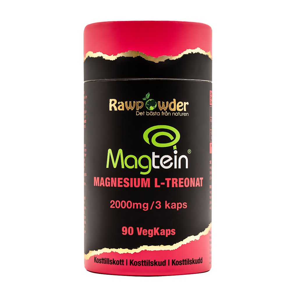 Detta är ett kosttillskott som innehåller magnesium i formen magnesium L-treonat. Magtein® är en patenterad form av magnesium L-treonat. Dagsdosen på 3 kapslar innehåller 2000 mg Magtein®, vilket motsvarar 144 mg elementärt magnesium.
