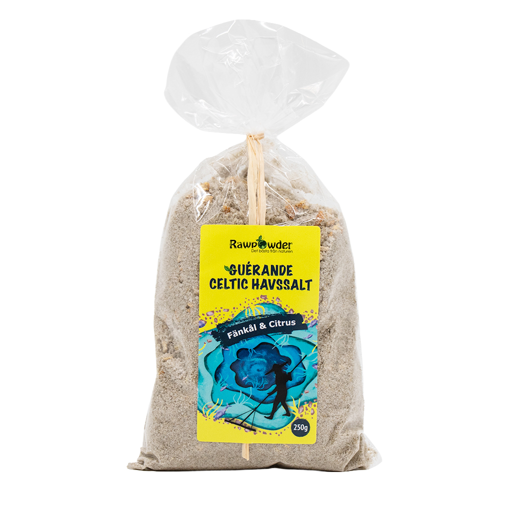 INGREDIENSER: Guérande havssalt PGI (90,9%), fänkål* & fänkålsfrön*(5%), citrusskal* (4,1%).